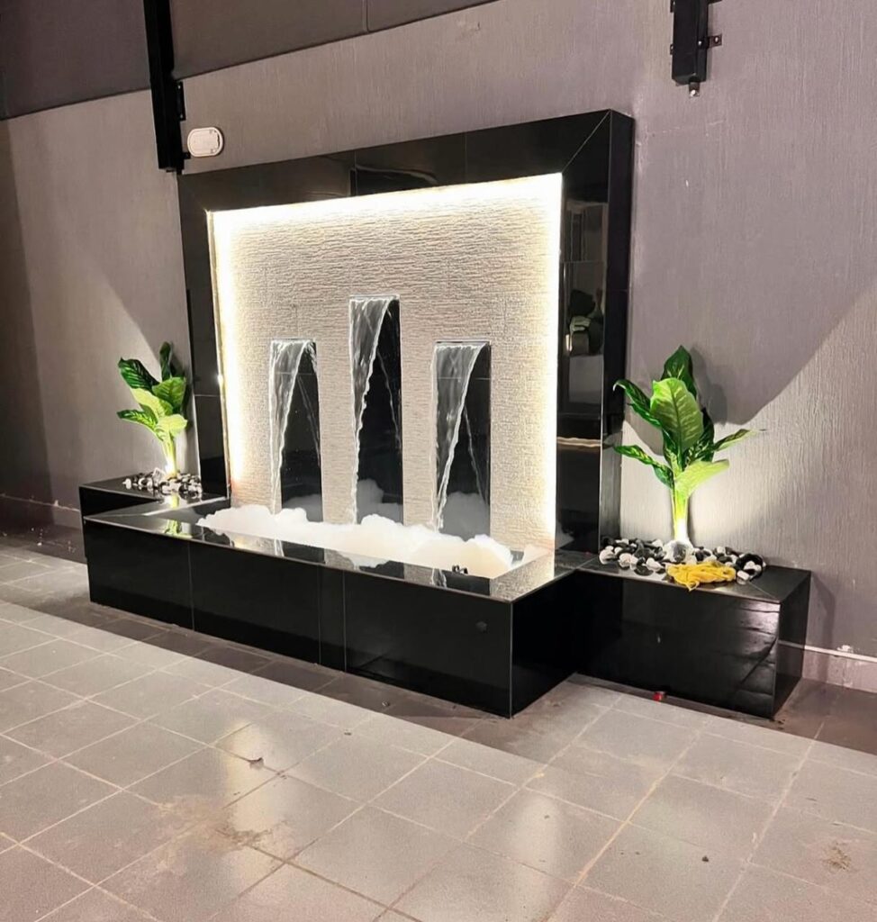 صوت المياه، حركتها، وانعكاسها مع الإضاءة يعطي إحساس بالراحة والفخامة لا يقدمه أي عنصر آخر.
